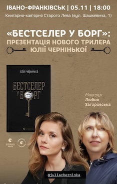 - 03.11.2025|10:28Юлія Чернінька презентує «Бестселер у борг» в Івано-Франківську