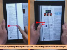Другими словами, эта основанная на алгоритме конверсионная технология определяет контакт на грани смартфона или планшета и объединяет их с событиями на дисплее, сохраняя таким образом совместимость с традиционными интерфейсами электронных книг и предоставляя пользователям новые возможности. Таким образом, пользователи могут перелистывать страницы электронного содержимого, не касаясь функциональных клавиш или дисплея.