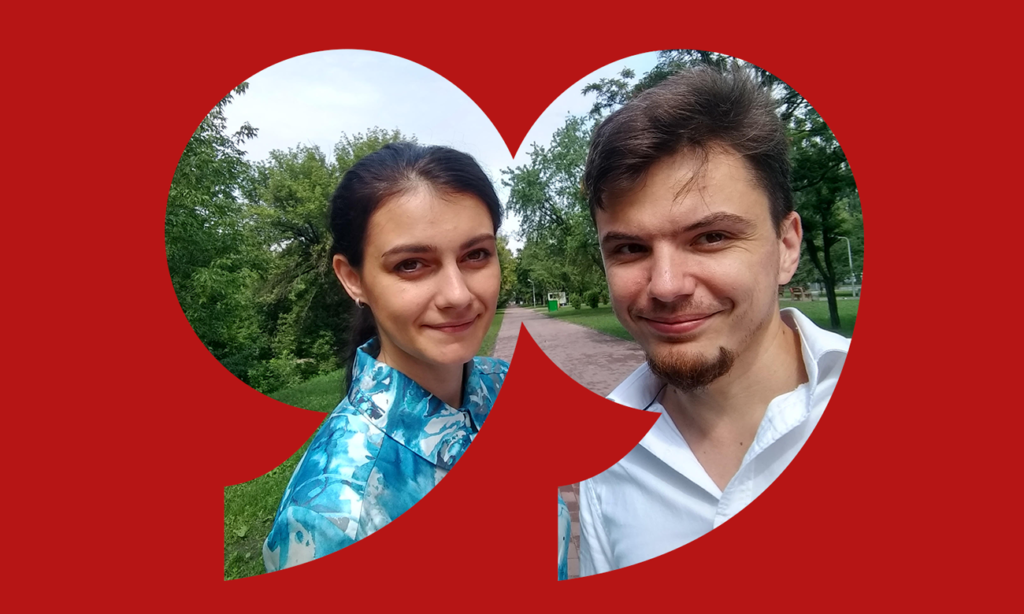 Ми познайомились на творчому семінарі, в їдальні Спілки письменників, і почали все з того, що Артем дав мені почитати свою п’єсу, а я розкритикувала його сайт. З того часу ми весь час одне одного критикуємо і кажемо один одному, як писати, а як — не треба. Правда, Артем мене ніколи не слухає, тоді я кажу, що він — зараза, але він все одно не слухає.