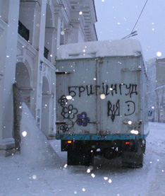 «Як мені розповіли активісти, в автомобілі зламали двері й спробували завести двигун. Після невдалих спроб зрушити автомобіль з місця, зломщики підчепили вантажівку іншим автомобілем-КАМАЗом - з номером АІ 08 84АА і відсунули моє авто, розблокувавши вхід. У мене не викликає сумніву, що це були найняті забудовниками Гостиного двору люди, але в цьому розбереться міліція та прокуратура, до яких я звернувся щодо неправомірних дій зі злому і проникнення у власність народного депутата України», - повідомив Бригинець.
