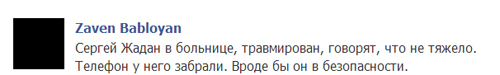 Водночас видавець Завен Баблоян на своїй сторінці у Facebook написав, що нині Сергій Жадан знаходиться у лікарні.