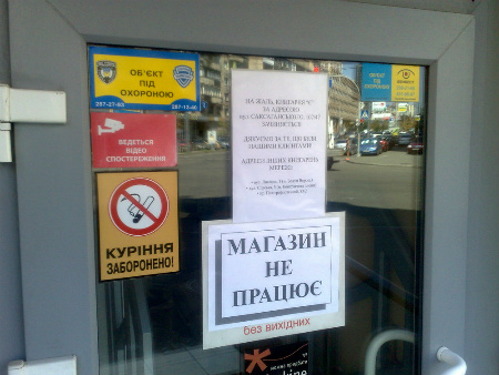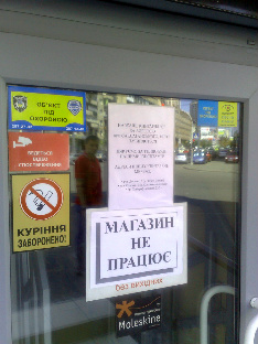 Про це свідчить оголошення на дверях магазину. Жодних пояснень співробітники книгарні не дають. Поки що не вдалося «Буквоїду» отримати і коментар від представника мережі книгарень «Є» Романа Цуприка.