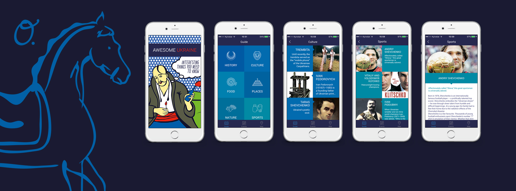 Повна версія Awesome Ukraine включає 7 розділів і GPS-локацій таємних місць і прогулянок. Також у додатку – цікава підбірка культурних і мистецьких заходів.