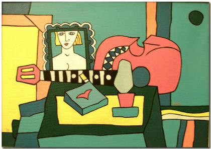 “Сюжет натюрморту з гітарою”, – розповідає художник з посмішкою, – “бере свій початок із тих перших солодкавих моментів свободи, відчуття дорослого життя, які були, напевно, у кожного пацана. Гітара, папіроси, дівчина (поки що ще не портреті, тобто у мріях). У мене в юності був товариш, ми разом вчилися грати на гітарі – він таки навчився, а я ні. Але це надзвичайне відчуття першої свободи, як би наївно це не виглядало, викликає теплі і ностальгічні почуття. От, напевно, підсвідомо й хотілося поділитися цими відчуттями із іншими – через свої картини, через колір”.