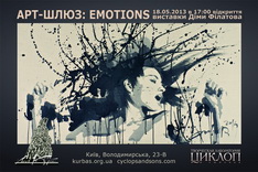 Творча лабораторія "Циклоп и сыновья" спільно з Театральним центром ім. Леся Курбаса запрошують вас на презентацію проекту "Арт-шлюз" та відкриття виставки Діми Філатова "Емоції", які відбудуться 18 травня о 17.00 в центрі Леся Курбаса за адресою Володимирська, 23в.