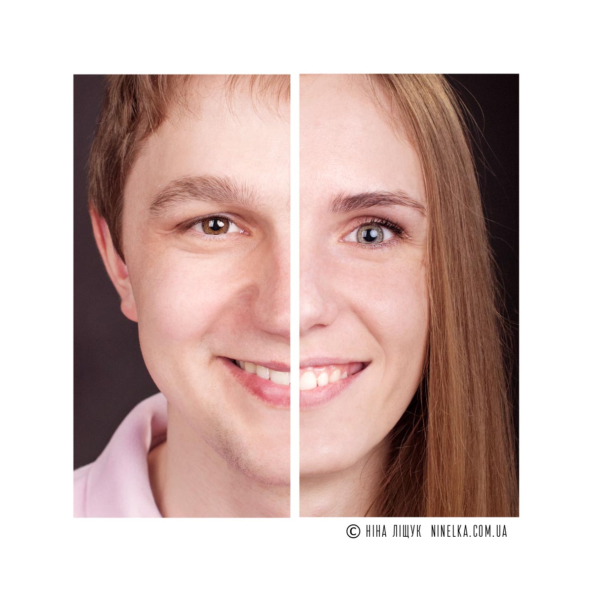 Запросивши до участі 20 пар з різним досвідом стосунків (від 1 до 55 років спільного життя), Ніна Ліщук досліджувала питання візуальної, а також психологічної схожості закоханих. Для достовірності експерименту, фотограф відбирала пари аж ніяк не за зовнішньою подібністю "двох половинок", а за принципом щирості та сили почуттів, про які повинна була заявити кожна пара. Результат вийшов дійсно феноменальним!