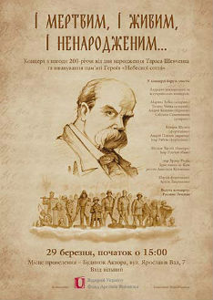 29 березня о 15.00 в Будинку Актора (вул. Ярославів Вал, 7) відбудеться концерт з нагоди 200-річчя від дня народження Тараса Шевченка та вшанування пам´яті Героїв «Небесної сотні».