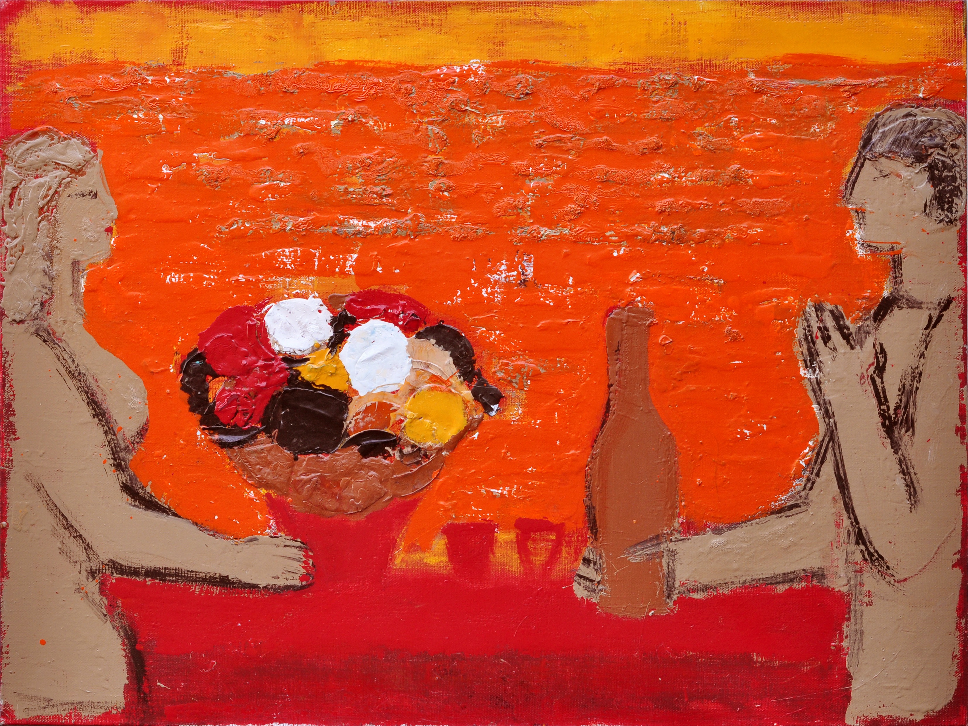 Олена Рижих, художник: «Ця виставка, як і всі мої попередні, не має обмежуючої концепції, як не може бути концептуальним народження дітей. Вона склалася з пейзажів улюблених реальних місць та узагальнено-фантазійних місцин, а також фігуративних композицій на тему побачення біля моря. Назва виставки «Побачення» стосується широкого спектру сторін життя, і ця тема мені уявляється багатогранною та невичерпною. Сам вернісаж – це також побачення з друзями та новими знайомими. Чекаю побачення з вами!»