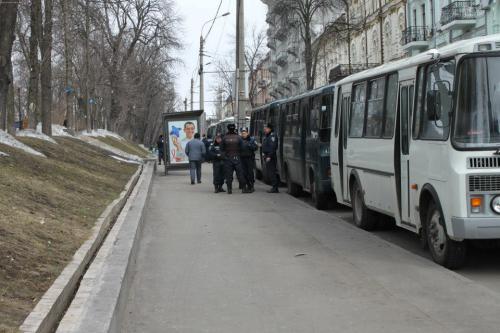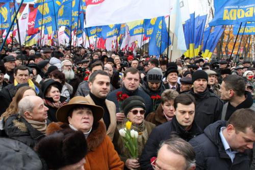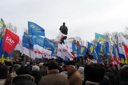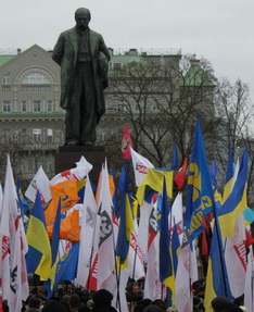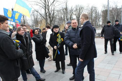 На мітинг, за попередніми підрахунками, зібралося кілька сотень людей. По обидві сторони доріжки, що веде до пам´ятника поетові, в ряд розмістилися прапороносці з партійними прапорами парламентських опозиційних фракцій - «Батьквіщина», «УДАР» і «Свобода».