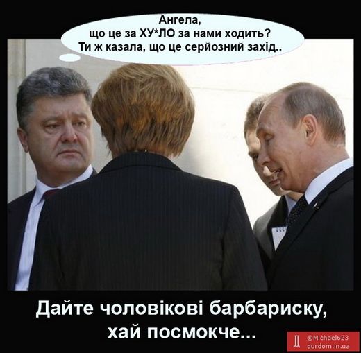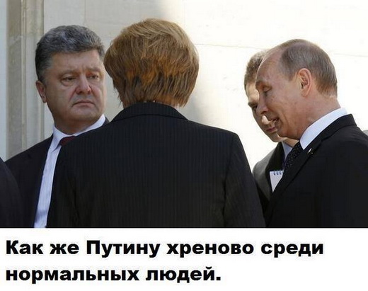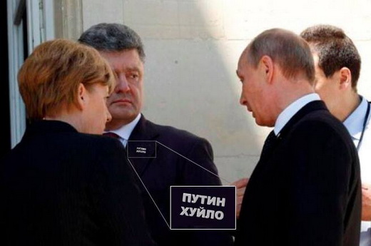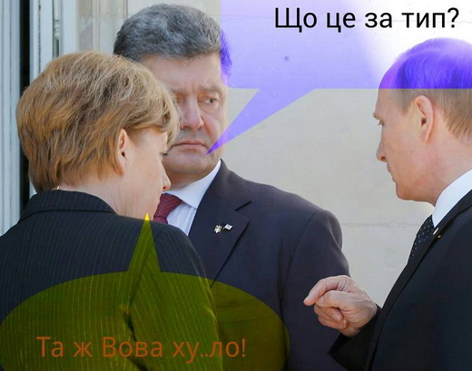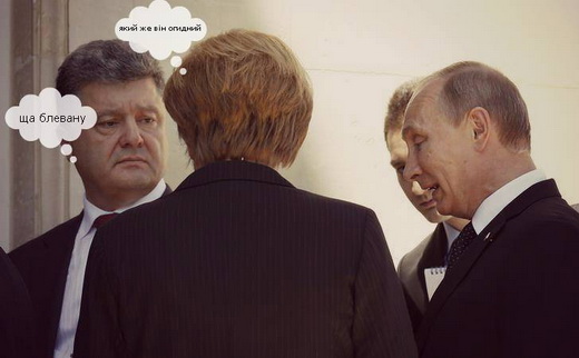 У мережі з’явилися фотожаби на зустріч Ангели Меркель, Володимира Путіна та Петра Порошенка, яка відбулася під час відзначення 70-річчя висадки представників антигітлерівської коаліції у Нормандії.
