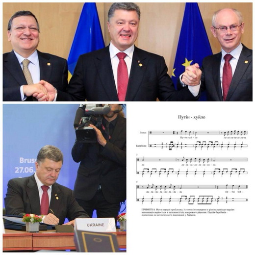 Головними героями фотожаб цього тижня стали Петро Порошенко, який підписав угоду про асоціацію України з ЄС, Віктор Медведчук, Олег Царьов, Нестор Шуфрич, які на боці бойовиків вели перемови у Донецьку про мирне врегулювання конфлікту на сході України.