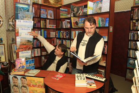 Презентували у культурно-мистецькому центрі „Інтермеццо" колоритні книжки свого видавництва „Зелений пес", задушевно читали напам´ять вірші - про Україну, кохання та „Колискову" („Тільки, будь ласка, не хропіть..." - попросив Віталій чи Дмитро - ми не один рік знайомі, але я їх досі плутаю), власноруч акомпонуючи собі на кобзі та ще одному дивовижному музичному інструменті.