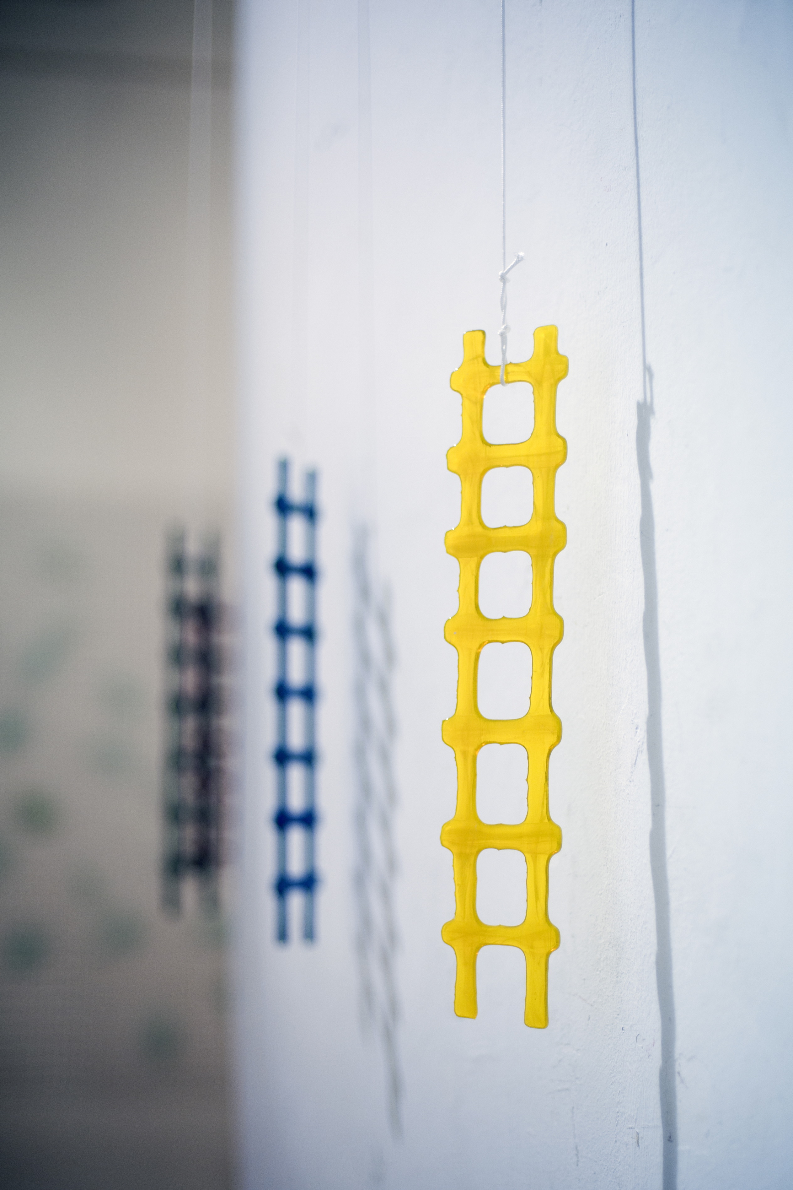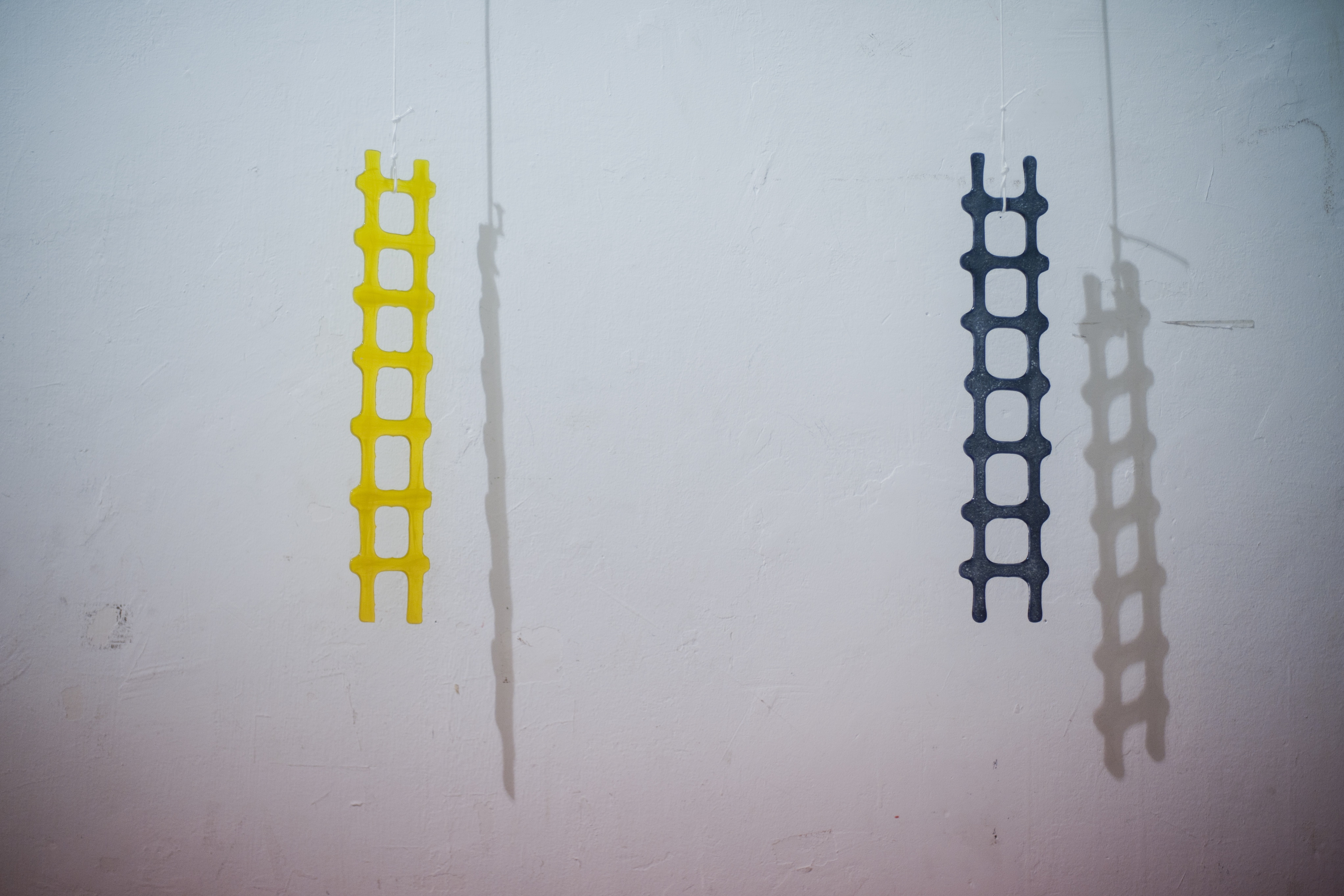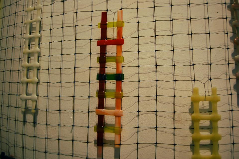 Д.П .: Ваша нещодавня виставка в Будинку художника балансувала на межі між трагізмом, який ми всі переживали в якості частин постреволюційного суспільства, і оптимізмом людей, у яких було щасливе дитинство, що вміють створювати образи, що піднімають глядача, що перетворюють його в людину, яка здатна вірити у щось, на щось сподіватися, як кажуть, «завищувати планку». Ваші скляні листи і скляні кольорові драбинки могли змусити глядачів, — можливо, не всіх, а тільки таких, як я — людей не надто життєрадісних, — подумати про неспішність, що дозволяє не робити зайвих рухів, а також про зусилля, що супроводжує бажання вірно розуміти і оцінювати події; не піддаватися долі, а взаємодіяти з нею, намагаючись її змінити. Як народилася ця виставка?