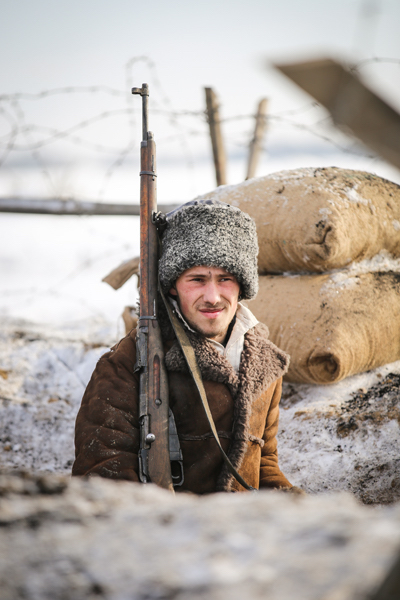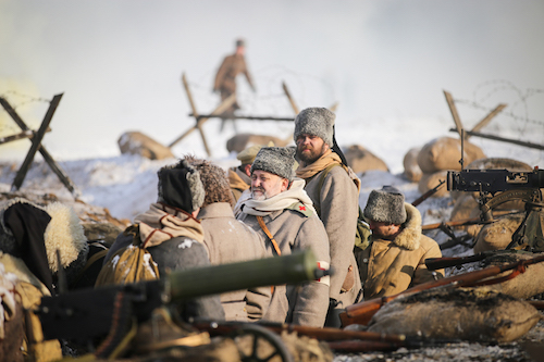 Уже четвертий день поспіль близько 150 військовослужбовців Президентської бригади Національної гвардії України знімають у фінальній сцені історичного екшну “Крути 1918. Захист”. Просто посеред поля неподалік села Підгірців, що на Київщині, гвардійці виконують ролі в масових сценах запеклого бою між українськими студентами та багатотисячною армією російської Червоної гвардії.