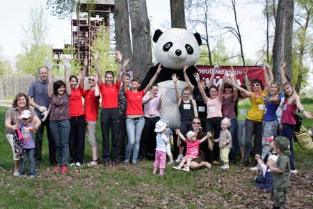 О 12.00 до нас в гості приїхала величезна Панда! Крім веселих фото, дітки з мамами уважно слухали коротенький інструктаж, про те, як потрібно вести себе в парках і куди викидати сміття. Все просто і доступно. Чому ж дорослі цього не розуміють? Хто залишив сміття в парку?
