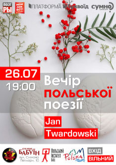 26 липня, о 19.00, у Букарні «Бабуїн» (вул. Симона Петлюри,10) відбудеться Вечір Польської поезії.