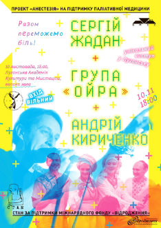 Але центром уваги буде саме благодійний концерт за участі українського письменника Сергія Жадана, фольк-рок гурту «Ойра» та музичного експериментатора Андрія Кириченка. Історія творчого тандему поета Сергія Жадана та електронно-етнічного гурту розпочалася близько 10 років тому й нараховує вже не один спільний виступ. Музиканти мають у своєму творчому доробку пісні на слова Жадана та поєднання віршів Сергія зі своїм музичним супроводом.