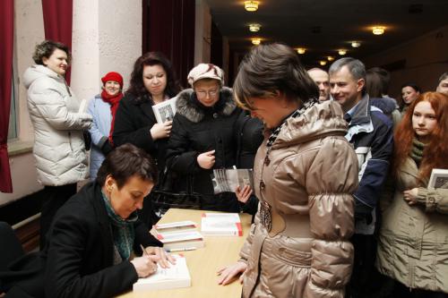 Ректор Чернігівського державного інституту економіки і управління Ірина Каленюк (митці завітали на запрошення кафедри українознавства цього вишу), представляючи Оксану Забужко, назвала її всесвітньо відомою письменницею. І це - не перебільшення! Роман «Польові дослідження з українського сексу» став бестселером у багатьох країнах - його вже перекладено майже на двадцять мов. Неабияким попитом користується й величезний за обсягом роман пані Оксани «Музей покинутих секретів», перекладений, зокрема, англійською, польською, чеською... До речі, ми нещодавно представили цю книжку на шпальтах літературної сторінки «Деснянські зорі» - в газеті «Деснянська правда», яку й подарували письменниці.