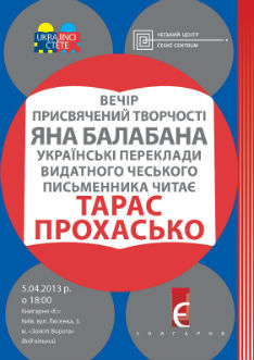 5 квітня о 18.00 Чеський центр у Києві та Книгарня «Є» запрошують послухати прозу Яна Балабана у виконанні Тараса Прохаська.