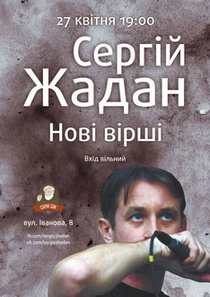 27 квітня о 19.00 у клубі «Старий Хем» (Харків, вул. Іванова, 8)Сергій Жадан презентує свої нові вірші.