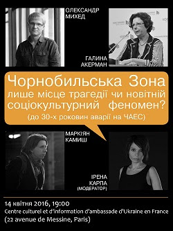 В дискусії візьме участь Маркіян Камиш – письменник, знавець Зони відчуження, автор роману «Оформляндія, або Прогулянка в Зону» (2015). Чимало критиків назвали книжку найкращим дебютом минулого року в українській літературі. Днями у Франції у видавництві Arthaud (Groupe Flammarion) під назвою La Zone вийшов французький переклад цієї книжки.