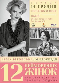 Відкрите інтерв´ю традиційно відбудеться у дворику «Львівської копальні кави» (пл. Ринок,10). У рамках проекту Мар´яни Савки «12 неймовірних жінок…», Ірма говоритиме про милосердя. Початок о 18:00.
