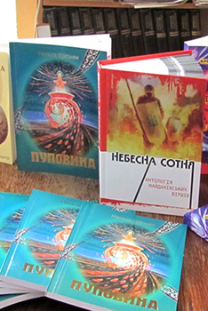 З нагоди 5 річниці доленосних подій у столиці в бібліотеці горіла свічка пам’яті, були оформлені стенд про Героїв Небесної Сотні, тематична книжкова виставка. Сама ж Наталія Крісман презентувала власні та у співавторстві з чоловіком, учасником АТО, збірки віршів «Пуповина», «Рабство у генах лікують повстаннями», а також колективні видання «Материнська молитва», «Небесна сотня», «Допиши про війну» та інші.