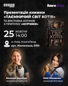 - 20.10.2025|18:59Коти, книжки й доброта: у Києві проведуть благодійну зустріч із притулком «Мурчики» і презентують «Таємничий світ котів»