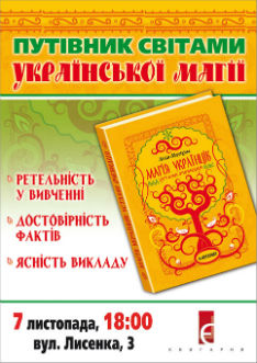 Українська магія існує, і значно ближче, ніж ви вважаєте. Мешканці Тернополя та Львова у цьому вже переконались. Киянам це, 7 листопада о 18.00, доведе досвідчений науковець-фольклорист Ліля Мусіхіна. Її книга не сконструйована із різних монографій та дисертацій, а ґрунтується на особистих дослідженнях та відкриттях, зроблених під час численних експедиційних розвідок.