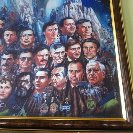 Крім того, у музеї є картина, на якій зображені представники Партії регіонів Володимир Рибак, Юхим Звягільський, Ринат Ахметов.