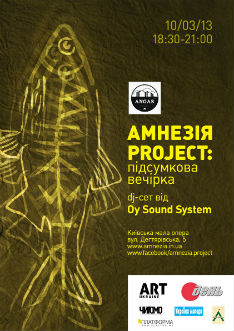 10 березня о 18.30 у Київській малій опері (вул. Дегтярівська, 5) відбудеться підсумкова вечірка-презентація літературно-мистецького мультимедійного проекту «АмнезіЯ project: відкрита платформа».