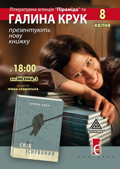 Книгарня «Є» та літературна аґенція «Піраміда» запрошують на презентацію поетичної збірки Галини Крук «Спів/існування», яка відбудеться 8 квітня.