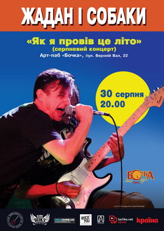 30 серпня в київському арт-пабі «Бочка» (вул. Верхній Вал, 22) харківський панк-ска-проект «Жадан і Собаки» виступлять з концертом «Як я провів це літо».