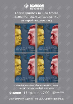 15 травня, о 17.00, в Будинку кіно (вул. Саксаганського, 6) відбудеться презентація ювілейного видання «Довженко без гриму», що побачило світ у видавництві «Комора».
