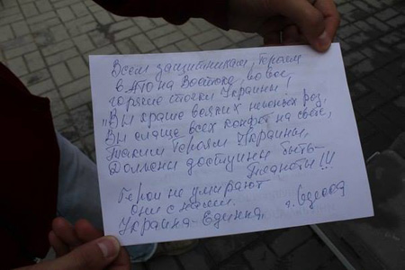 "Дощ, який йшов з самого ранку, навпаки додав нам азарту та наснаги. На наших хлопців там сипляться кулі, то невже ми за для них не готові потерпіти такі дрібні незручності, - говорить речник об´єднання Стас Прудкий. - Нам вдалося привернути увагу пересічних громадян та пробудити в них притаманну всім українцям чуйність. Майже кожен перехожий жертвував кошти".