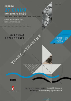 27 січня, о 18.30, у київській книгарні «Є» (вул. Лисенка, 3) відбудеться презентація роману «Транс-Атлантик» одного з найнеоднозначніших польських письменників - Вітольда Ґомбровича.