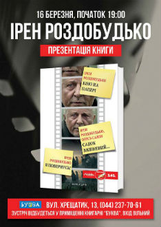Сьогодні, 16 березня, о 19.00 в книгарні «Буква» (вул. Хрещатик, 13) відбудеться презентація книги Ірен Роздобудько «Кіно на папері».