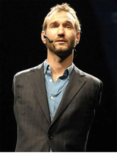 Нік Вуйчич - австралійський письменник і меценат, один з найбагатших і найщасливіших людей планети, творець міцної сім´ї, батько двох дітей був народжений з генетичною патологією (тетраамелія) - без рук і ніг. Незважаючи на свою інвалідність, цей юнак зміг переконати себе і весь світ у тому, що життя прекрасне, а віра, любов і справедливість дійсно існують.