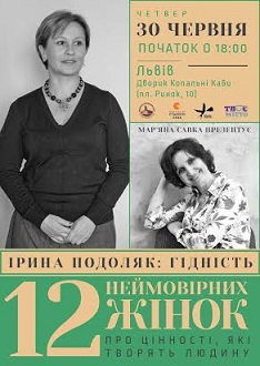 Відтак, саме цінності є нашою духовною м’язовою тканиною. «Коли м’язи атрофовані - хребет «розсипається». Тренуймо м’язи!», - закликає Ірина Подоляк. А «Видавництво Старого Лева» запрошує провести разом вечір четверга у дворі «Львівської копальні кави», адже 12 публічних інтерв’ю з цікавими і впливовими жінками є не лише спробою озвучити важливі та болючі для суспільства теми. Це також спосіб від розмови перейти до реальної допомоги.