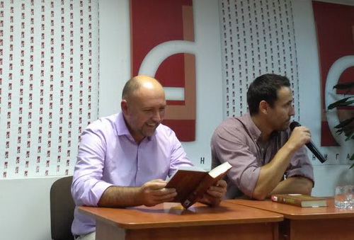 Під час проведення заходу до слова були запрошені присутні в книгарні автори. Першим виступив боєць АТО, письменник, журналіст Артем Чех, який розповів гостям про те, що свої твори він писав однією рукою на телефоні, сидячи в окопі. Його бойові побратими завжди просили Артема щось їм почитати, і їм це подобалося.