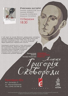 "Книгарня "Є" тавидавництво "Дух ілітера" презентують книжку Леоніда Ушкалова "Ловитва невловного птаха: життя Григорія Сковороди". Учасники: Леонід Ушкалов, Леонід Фінберг, Олексій Сінченко, Микола Сулима.