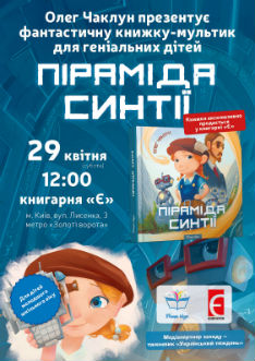 Книгарня «Є» та видавництво «Фонтан казок» запрошують на презентацію нової книжки популярного українського дитячого письменника Олега Чаклуна «Піраміда Синтії».Зустріч відбудеться у суботу, 29 квітня. Початок – о 12.00.