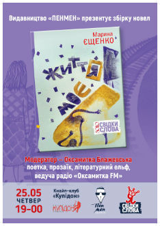25 травня о 19.00 у приміщенні кнайп-клубу «Купідон» (вул. Пушкінська, 1-3) відбудеться презентація книги Марини Єщенко «життЯ моЄ!!!», що побачила світ у видавництві «Пенмен».