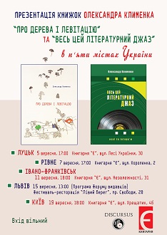 У вересні в п’яти містах України відбудуться презентації нових книжок відомого українського письменника Олександра Клименка.