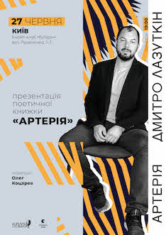 У середу, 27 червня, у Кнайп-клубі «Купідон» (вул. Пушкінська, 1-3)Дмитро Лазуткін прочитає вірші з нової книги «Артерія».