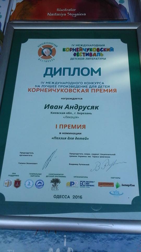 Головний редактор видавництва " Фонтан казок " Івана Андрусяка отримав Корнійчуковську премію у номінації " Поезія для дітей ".
