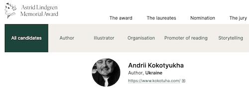 Цього року серед 263 номінантів із 74 країн світу є й четверо українських письменників. Вперше офіційно від Української національної секції IBBY висунуто відомого автора пригодницьких книжок для дітей та підлітків Андрія Кокотюхи.