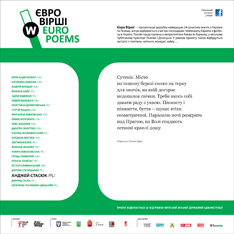 12 червня о 17.00 у Книгарні Є (вул. Лисенка 3) відбудеться презентація проекту «Євро Вірші - Euro Poems».