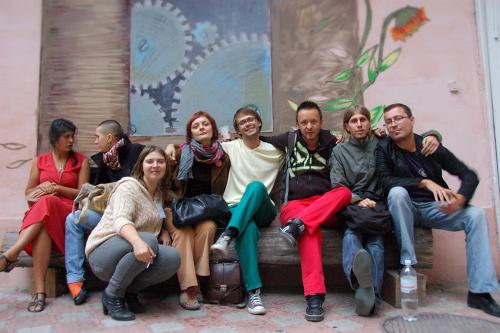 Учасники та переможці ІІІ Конкурсу п´єс «Драма.UA» (справа на ліво) - переможець конкурсу п´єс Віра Маковій з харківською режисеркою Славою Влади, Наталія Мостопалова, лауреат конкурсу (2 місце) Тетяна Киценко, Ден Гуменний, член журі конкурсу п´єс, драматург Павло Ар´є, Сашко Брама, лауреат конкурсу (3 місце) Євген Марковський.