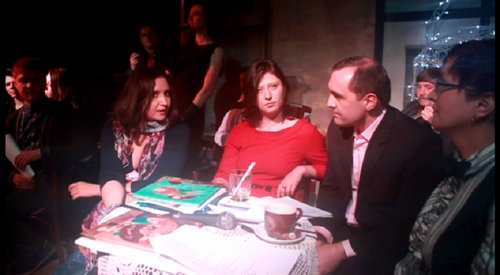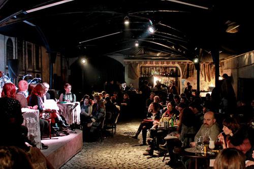 Віршами про кохання, чуття і почуття, зустрічі і розставання розповідали сім відомих українських поетів - Галина Крук, Маріанна Кіяновська, Любомир Стринаглюк, Катерина Оніщук, Юлія Мусаковська та Мар´яна Савка, яка виступила у ролі не лише поетеси, а й ведучої. У модеруванні вечором компанію Мар´яні склав Володимир Бєглов. Поетів, що на імпровізованій сцені дворику влаштували театралізоване дійство у французькому стилі, об´єднав не лише вечір, а й збірки "Видавництва Старого Лева", під обкладинками яких зустрілися їхні твори - "Шоколадні вірші про кохання"та "На каву до Львова".